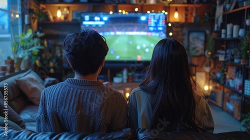 Couple Watching a Sports Game on TV in a Cozy Living Room
