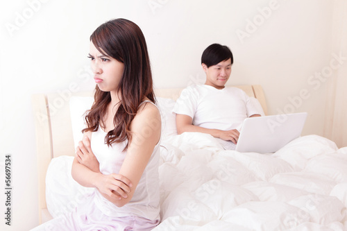 Couple with computer in bed