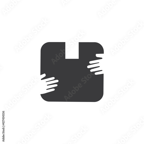Courier delivering a package to a customer, icon.