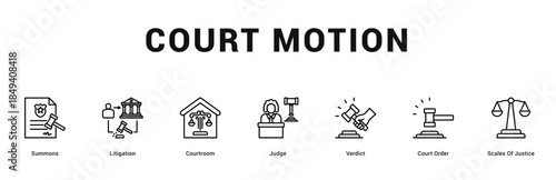 Court Motion Modern and clean web banner illustration featuring thematic icons for visual communication