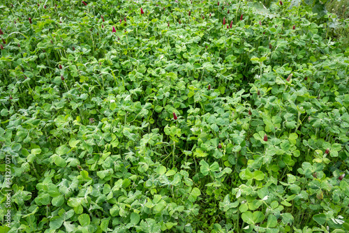Cover crop of clover planted over winter, will be tilled under for soil nutrients before spring planting
