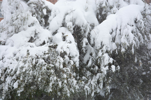 Covered trees in a snowy landscape
