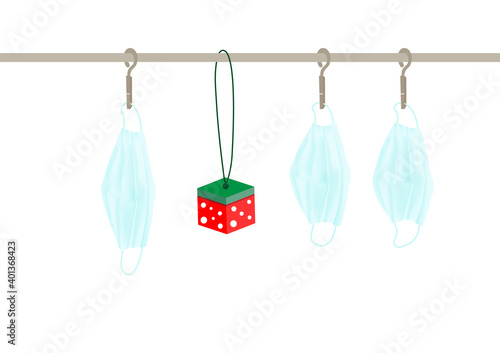 Covid-19 blue cotton mask washing and air dry daily with christmas gift box vector isolated on white background ep21
