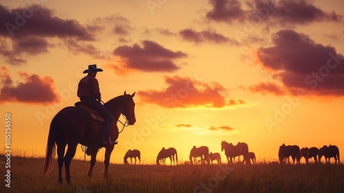 Cowboy Silhouetted Against Sunset