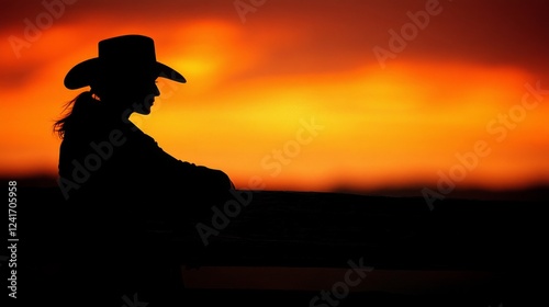 Cowgirl Silhouette at Sunset Watching the Fiery Sky