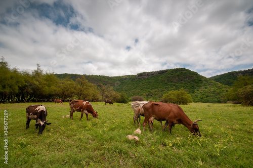 Cows on green plains in Salalah, Oman