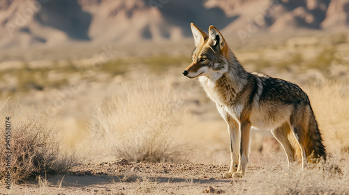 Coyote Standing Alert in Arid Desert Landscape