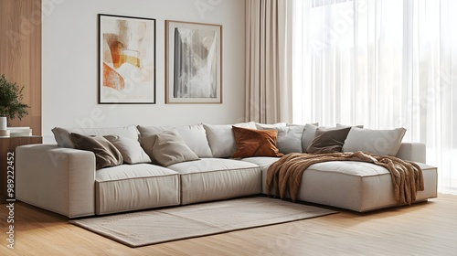 Cozy and Inviting Modern Living Room with Comfortable Sectional Sofa Pops of Color and Warm Natural Decor Elements Creating a Serene Atmosphere