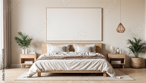 Cozy Bedroom Interior Wall Frame Mockup