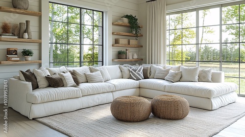 Cozy Beige Living Room with Sectional Sofa and Windows