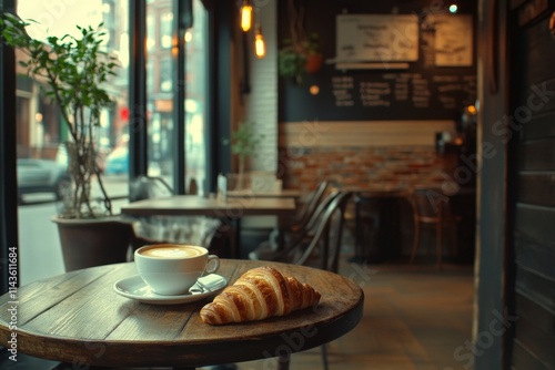 Cozy Cafe Morning with Croissant and Coffee