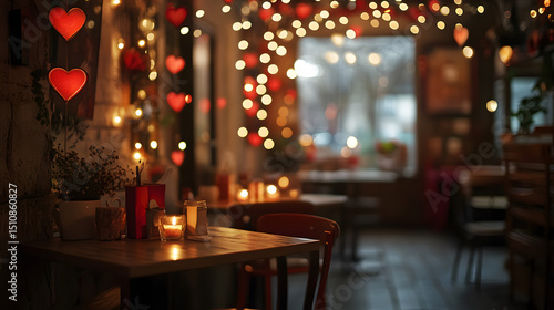 Cozy Coffee Shop A coffee shop decorated with heart-shaped garlands and candles, valentine day