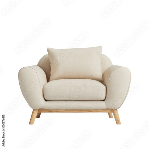 Cozy cream armchair with plush cushion isolated on transparent background.