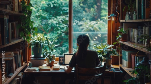 Cozy Home Office Vibes: Productive Work Environment with Nature Views