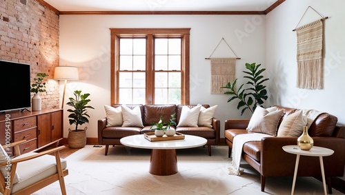 cozy living room with a mid-century modern design