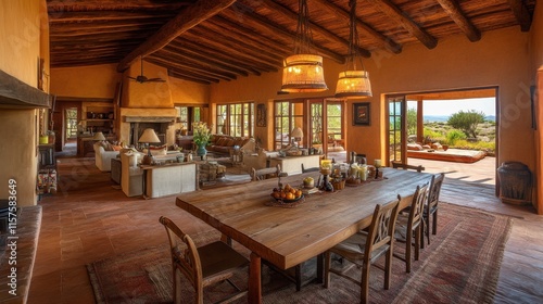 Cozy Living Space with Rustic Decor and Scenic Outdoor View