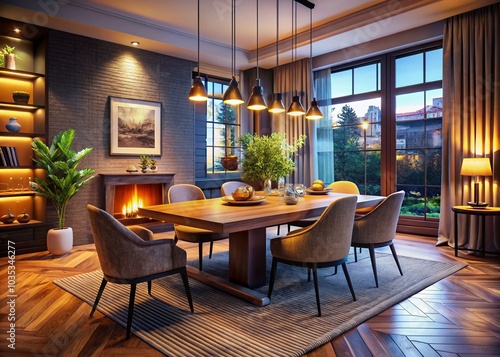 Cozy Modern Dining Room Interior Mockup - 3D Render with High Dynamic Range for Home Decor Inspiration