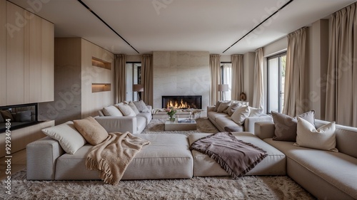 Cozy Modern Living Room with a Neutral Color Palette and Plush Textures.
