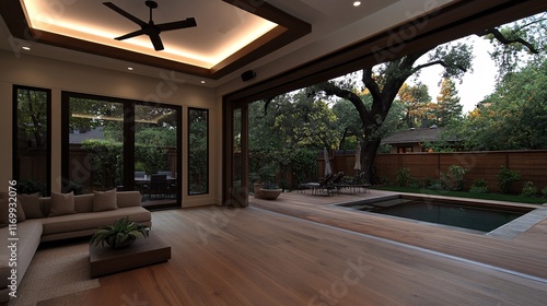 Cozy Warm Living Room with Artistic Decor and Nature View
