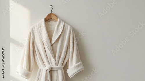 Cozy White Bathrobe Hanging on a Wall with Soft Natural Light