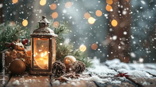 Cozy Winter Lantern with Festive Decor