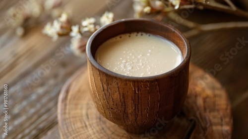 Cozy Wooden Cup of Warm Coffee on Rustic Wooden Table