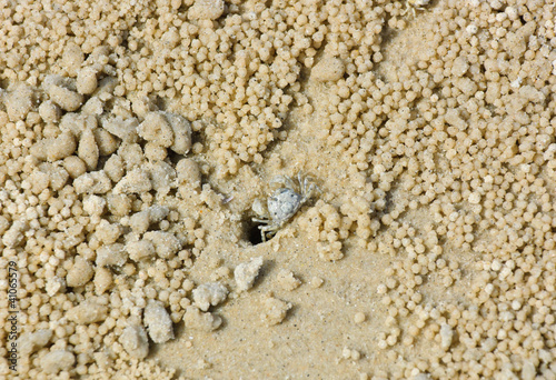 Crab at hole on beach