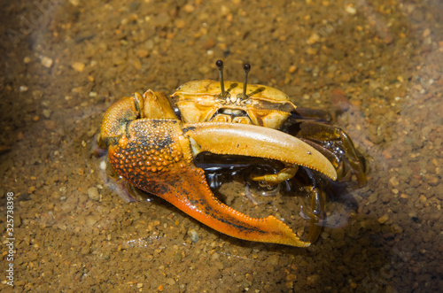 Crabe violoniste sur une plage de Nosy Be, Madagascar.