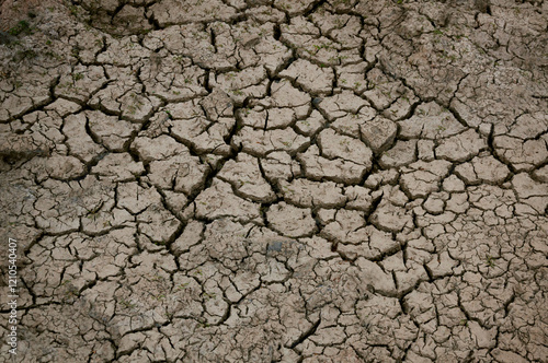 Cracked soil due to drought, Brown dry soil or cracked ground texture background, Aridity, cracked mud.