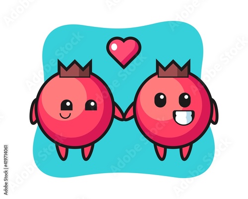 Cranberry cartoon character couple with fall in love gesture