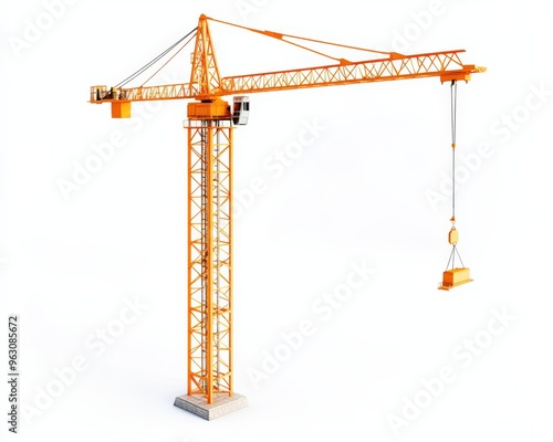 Crane Isolated. Toy Scale Model of Tower Crane in Orange Colour for Childhood Joy