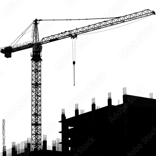 Crane Lifting at Construction Site Silhouette Industrial Project