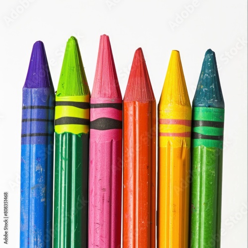 Crayons Stand In Vibrant Hues Against A Pristine White Background, Illustrations Images