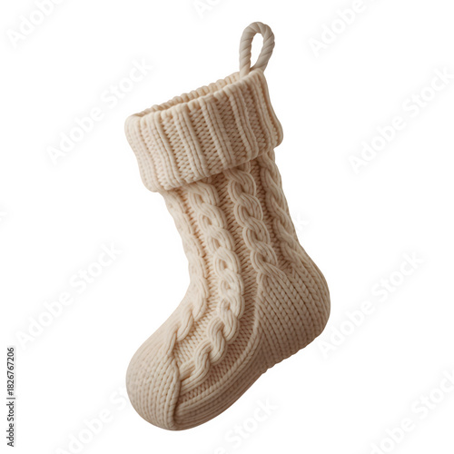Cream Cable Knit Christmas Stocking Isolated for Holiday Decor Mockup