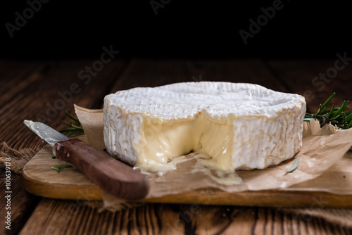 Creamy Camembert on wooden background