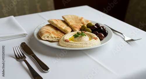 Creamy Hummus, Warm Pita, and Olives: A Mediterranean Delight Awaits