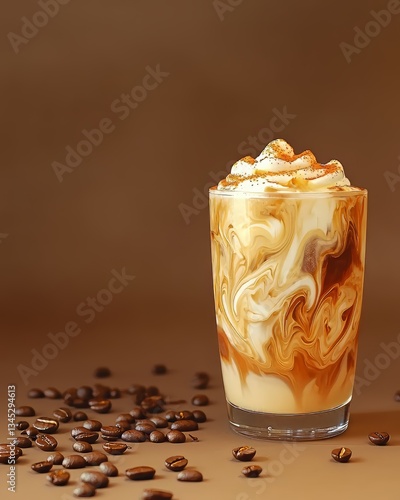 Creamy Iced Coffee with Whipped Cream and Coffee Beans