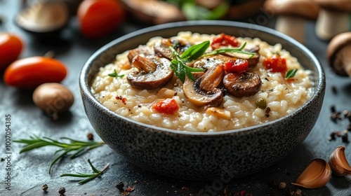 Creamy Mushroom Risotto with Rosemary and Tomatoes