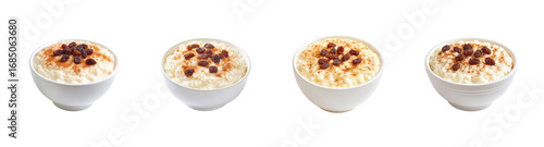 Creamy Rice Pudding PNG set with Raisins and Cinnamon Isolated on Transparent backround