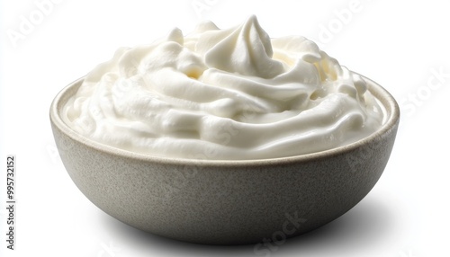 Creamy Whipped Topping in a Gray Bowl Ready for Desserts and Coffee Drinks at a Kitchen Table