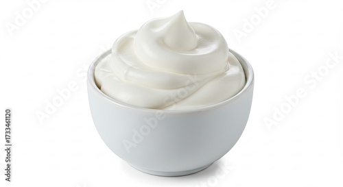 Creamy White Yogurt or Whipped Cream in a White Bowl.