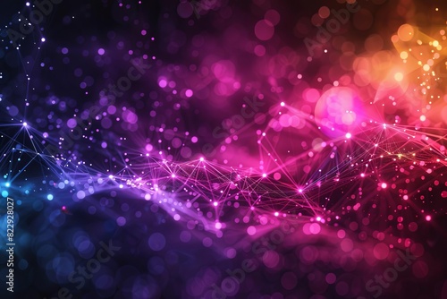 Create a colorful abstract background image with a glowing network of interconnected nodes and a vibrant bokeh effect.