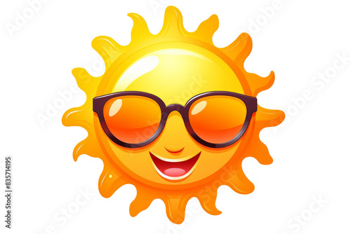 Create a fun illustration of a smiling sun wearing sunglasses. The sun should have a friendly expression and be surrounded by bright, warm colors. The illustration should be suitable for use as a logo