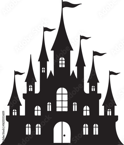 Create a spooky Halloween vibe with this haunted castle silhouette, perfect for invitations and decorations