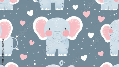 Create whimsical seamless elephant pattern digital space graphic design artistic environment aerial view gigapixel art