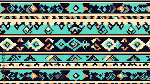 Creates Abstract Pattern with Tribal Motifs and Geometric Shapes in Seamless Style