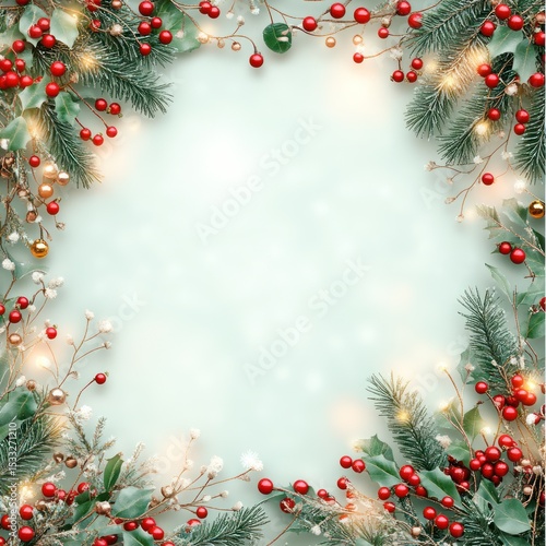 Creating a warm and inviting winter wonderland with a festive Christmas photo frame adorned with intricate details and glowing accents