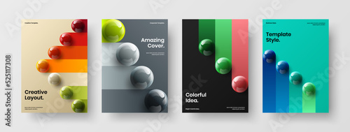 Creative 3D spheres corporate identity layout collection. Simple magazine cover design vector concept set.