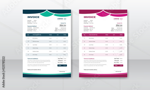 Creative and Unique abstract style business invoice template. Invoice layout template paper sheet include accounting, price, tax, and quantity with color variation vector illustration