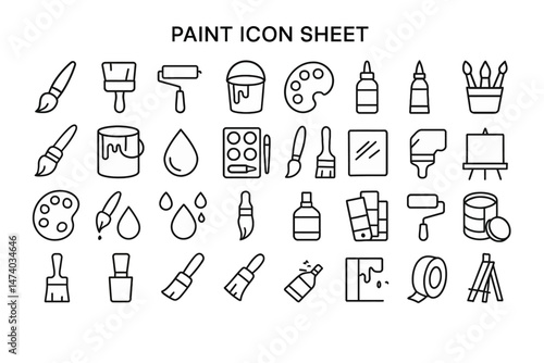 Creative Canvas: A vibrant collection of meticulously crafted paint icons, artfully arranged to symbolize the essence of painting and artistic creation.